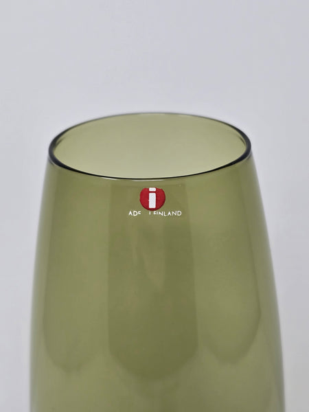 1) Iittala i-glass Olive Green Vase by Time Sarpenava. Triangle label dates it between 1958 -1974 (scratch on side)