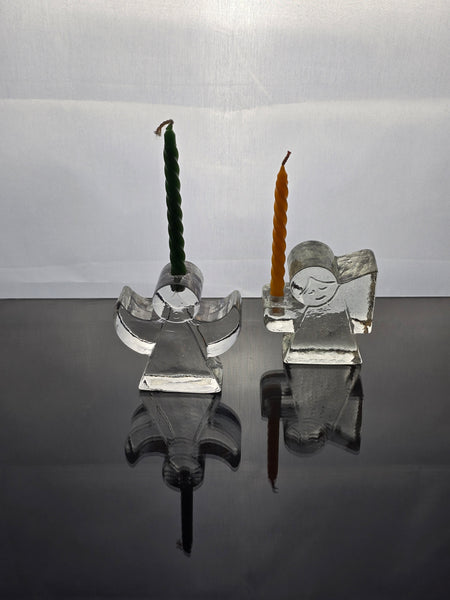 Wiesenthalhutte Angel ice glass candleholders. Made in West Germany. For use with tiny taper candles. Price is for the pair.
