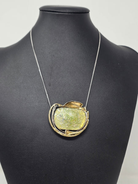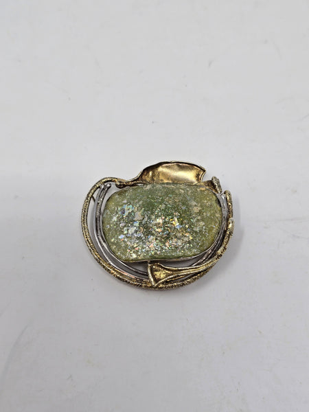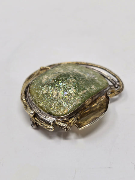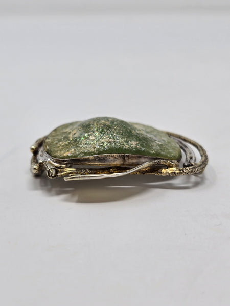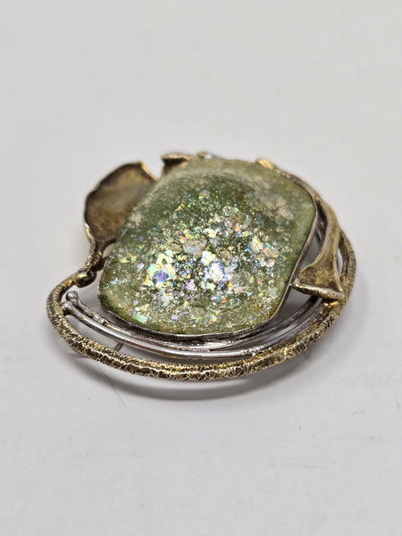 Avi Soffer Ancient Roman Glass and Sterling Silver with 14K Gold Brooch
